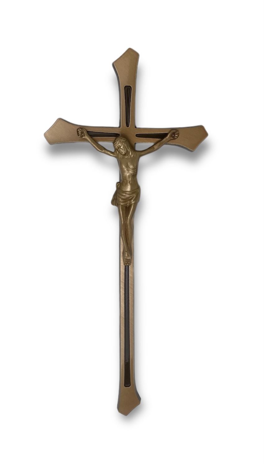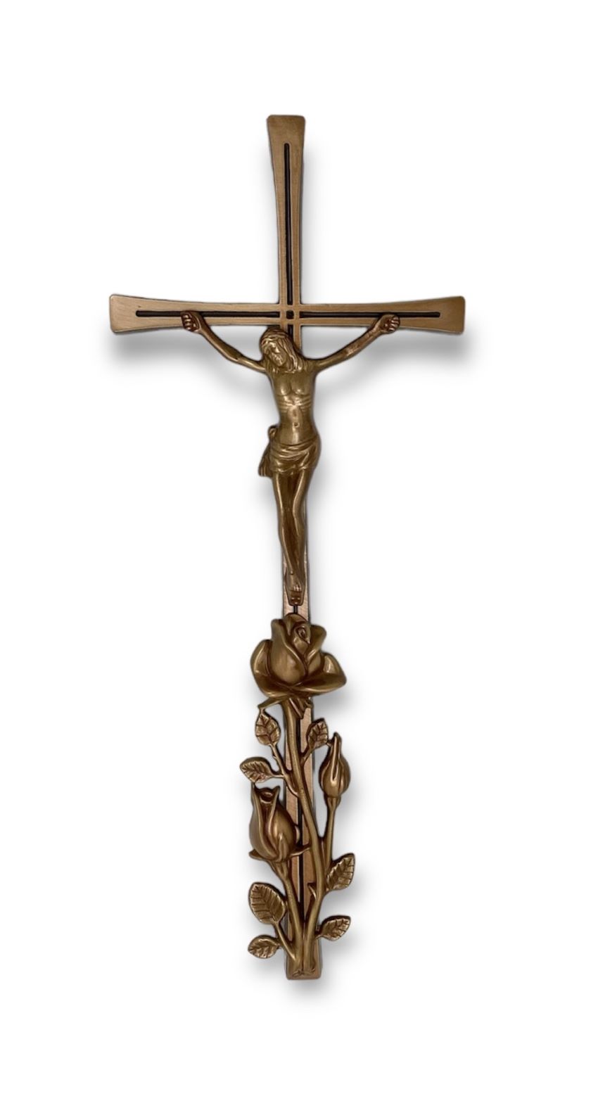Krzyż Romano F4 z pasyjką i różą brąz